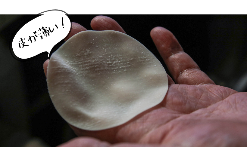 本家の高知から取り寄せる皮は少し透けるくらいの薄さが特徴。
